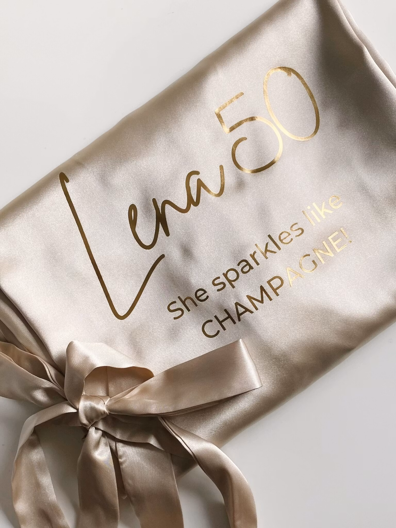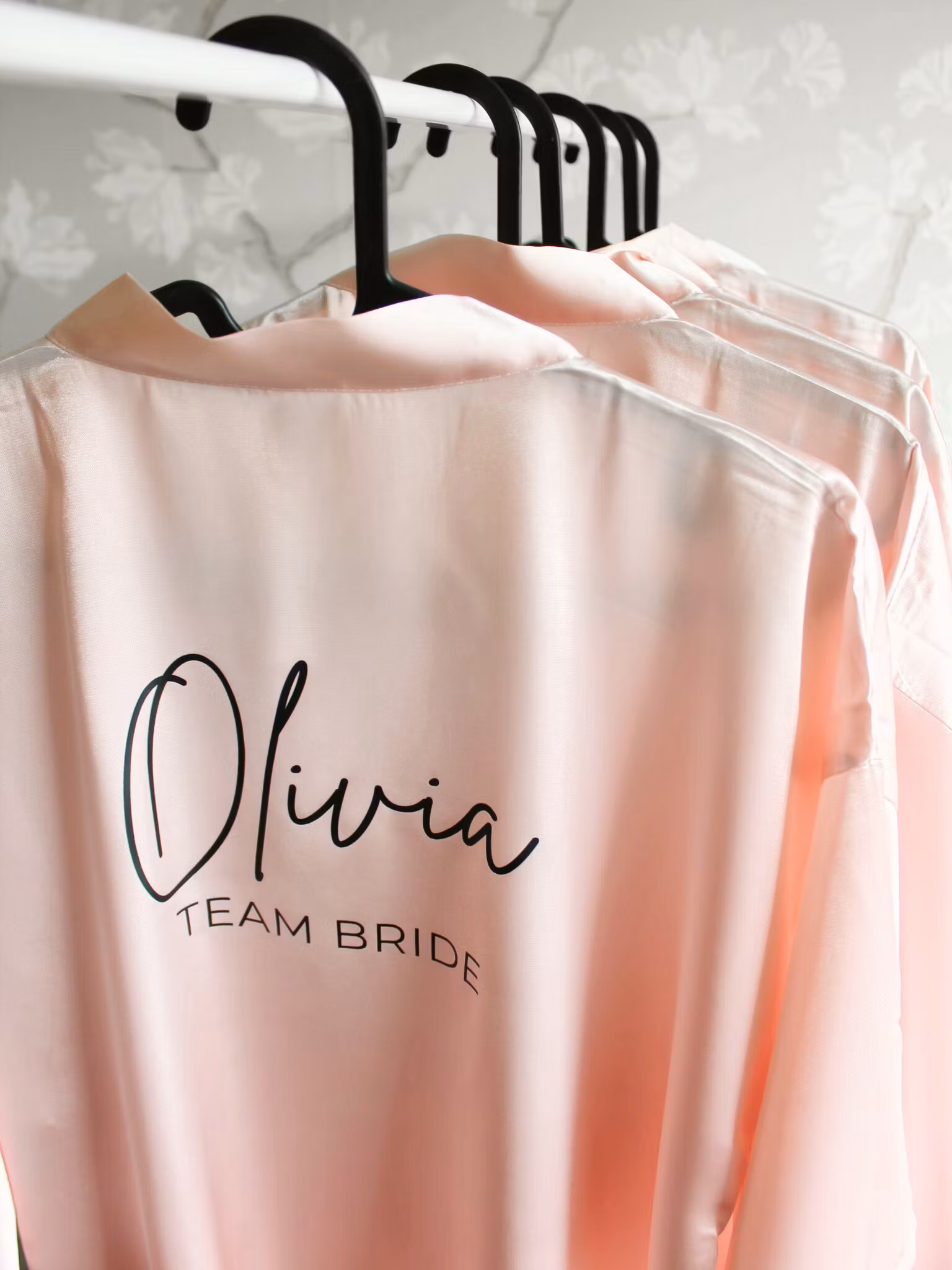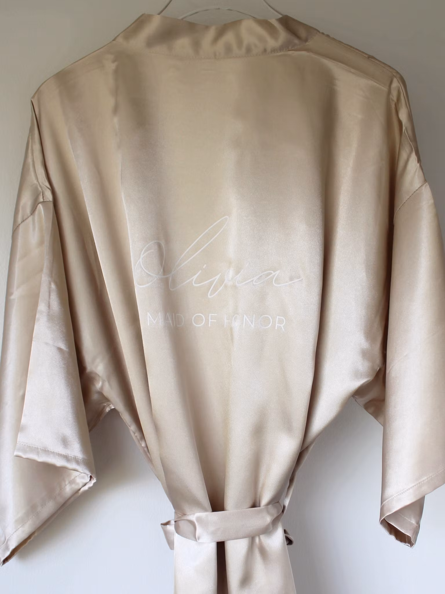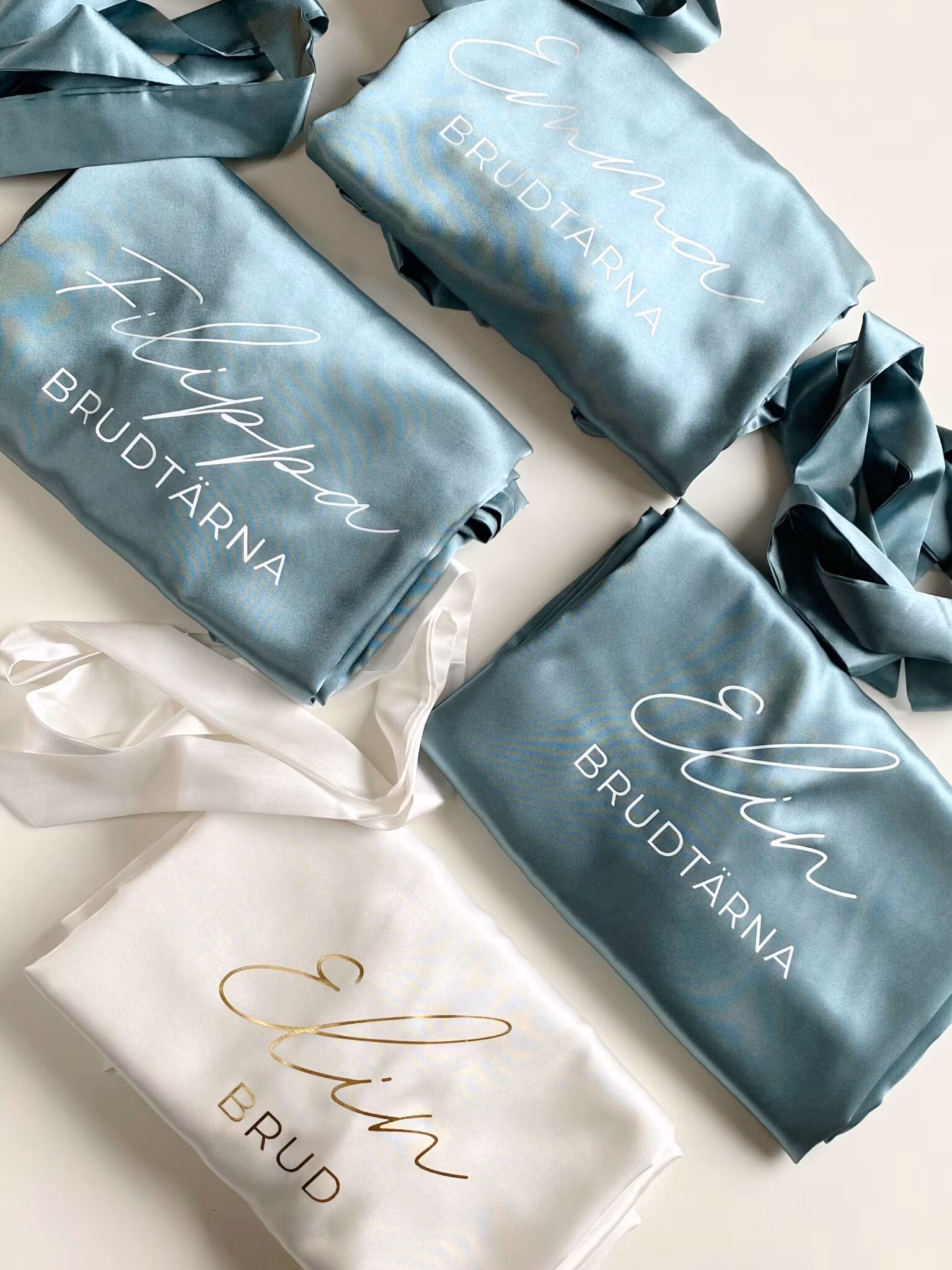 Morgonrockar i högkvalitativt satintyg som du kan göra personlig med namn och egen text. Välj mellan olika typsnitt på övertexten, undertexten trycks i typsnittet standard och i versaler. Vi erbjuder 5 olika färger du kan välja mellan på texten.